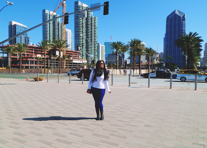 No nosso último dia em SD, fomos conhecer, primeiramente, o centro da cidade e o Embarcadero, que é nada mais nada menos que o porto. Ali, ficam vários restaurantes, píers, parques e museus, incluindo um marítimo, que é localizado num grande e antigo navio da marinha americana utilizado na Segunda Guerra Mundial. Em frente a ele, há uma estátua muito famosa, a Unconditional Surrender, baseada naquela famosa foto de um marinheiro beijando uma enfermeira na Times Square, em NY. A pose da estátua é imitada por todos os casais que passam por ali e decidem tirar a foto, mas como eu tava sem o mozão por perto, fui sozinha mesmo né, triste. Hahahahaha.