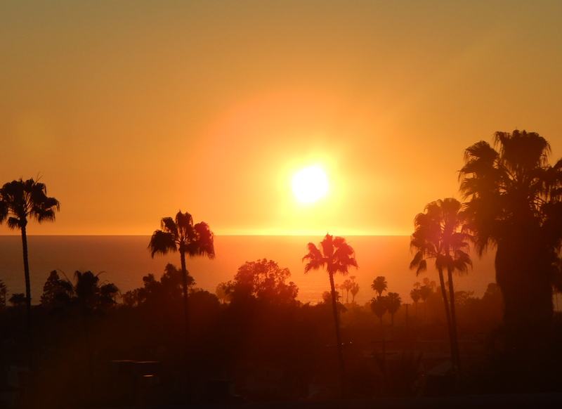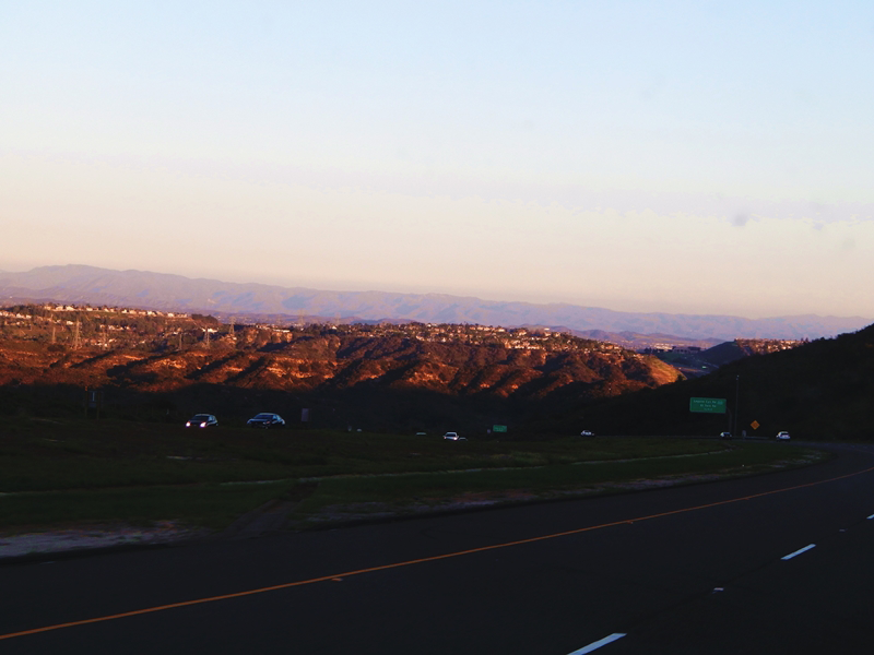 Nessa altura do campeonato, já era fim de tarde. De LA até SD são aproximadamente 3 horas de viagem. E foram 3 horas de vistas lindíssimas! O que mais me chamou a atenção foi a imensa quantidade de casas maravilhosas em cima das pequenas montanhas. Mais nada se superou ao primeiro pôr do sol (e o mais bonito de toda a viagem!) que vimos nesse trajeto. Dona Cali arrasou no presente de boas vindas. <3