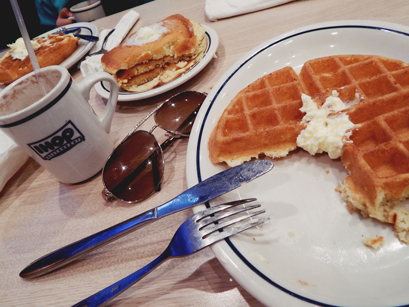 No dia seguinte, acordamos bem cedinho e, num climinha gostoso de frio, fomos tomar café da manhã na tão famosa IHOP (International House of Pancakes). E, ai, como eu tava com saudades do american breakfast! (Inclusive estou novamente, agora que to relembrando isso tudo. Que saudades!). Comi waffles, panquecas, ovos mexidos e bacon, com chocolate quente — e, durante diversas idas ao IHOP nessa viagem, pedia a mesma coisa hahahahaha AMO!